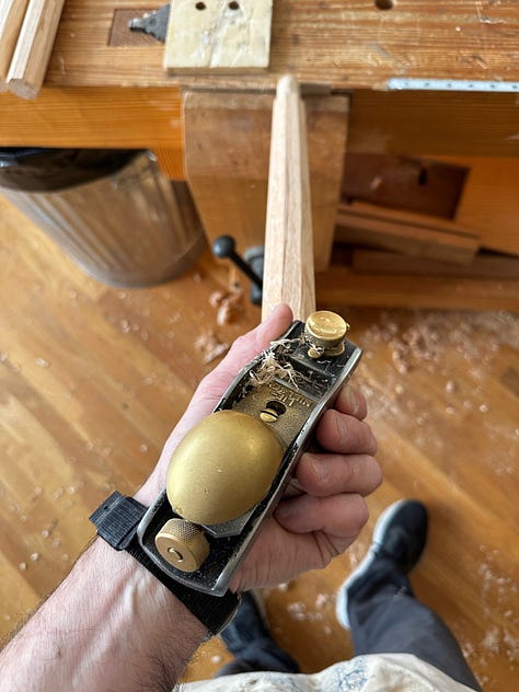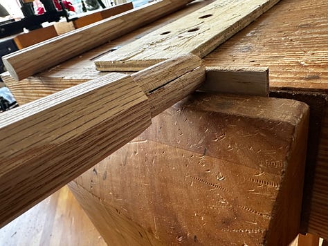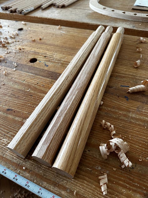 This week I’m building a chair in slow motion for “Build a Chair from Bulls&%t.” And I do mean slow. Today, all I was able to accomplish at the bench was tenoning and octagonalizing the legs.