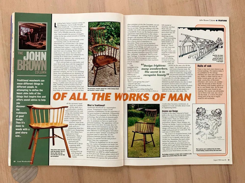 Good Woodworking was published monthly, which is an insane pace for a woodworking magazine. But I waited impatiently every month for it to arrive. I photocopied the John Brown articles (I still have those copies), and I read them several times over.