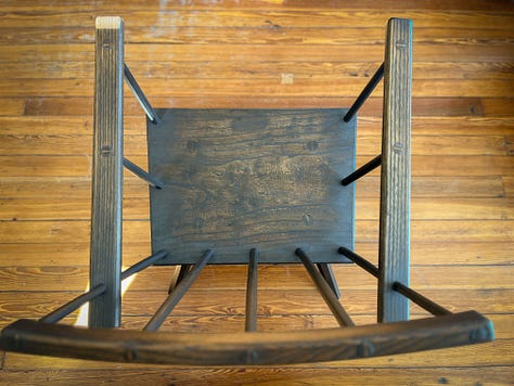 Like all my chairs, the joints are bound with animal glue (which is reversible should the chair ever need a repair). And the tenons are wedged with hickory. The topcoat is a soft wax we make here in our shop. It is 100 percent non-toxic.